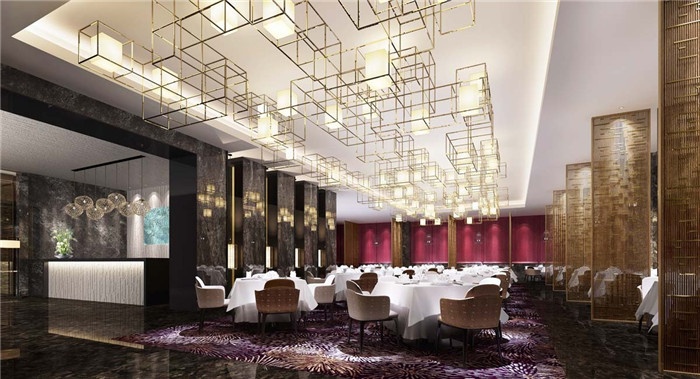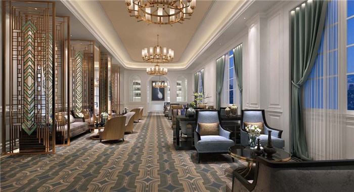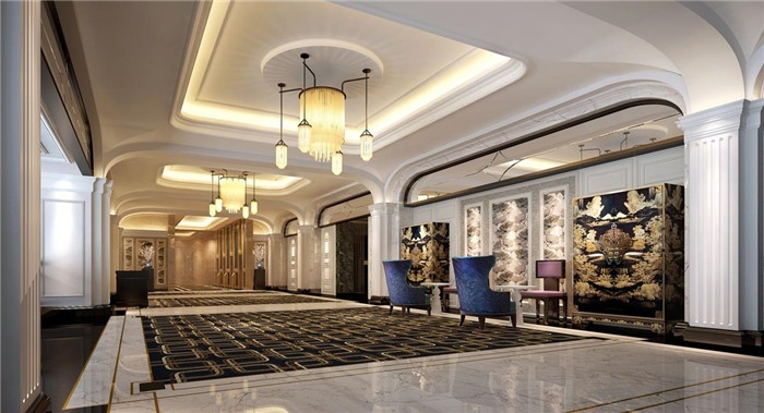 一個較大的酒店設(shè)計空間可利用天花的升降、地坪的高差,以及圍欄的、列柱、隔斷等進(jìn)行多次元的空間分割。實(shí)體隔斷如墻體、玻璃罩等的垂直分割成私人密性比較強(qiáng)的酒店空間,隔透性隔斷,如各種形式的落地罩、花窗隔層,既享受了大空間的共融性,又擁有了自我呵護(hù)的小空間,列柱隔斷,可構(gòu)成特殊的環(huán)境空間,似隔非隔,隔而不斷。燈飾區(qū)隔空間,利用燈飾結(jié)合天棚的落差來劃分空間,這種空間的組織手法,使整體空間具有開放性,顯得視野開闊,又能在人們心理上形成區(qū)域性的環(huán)境氛圍。
